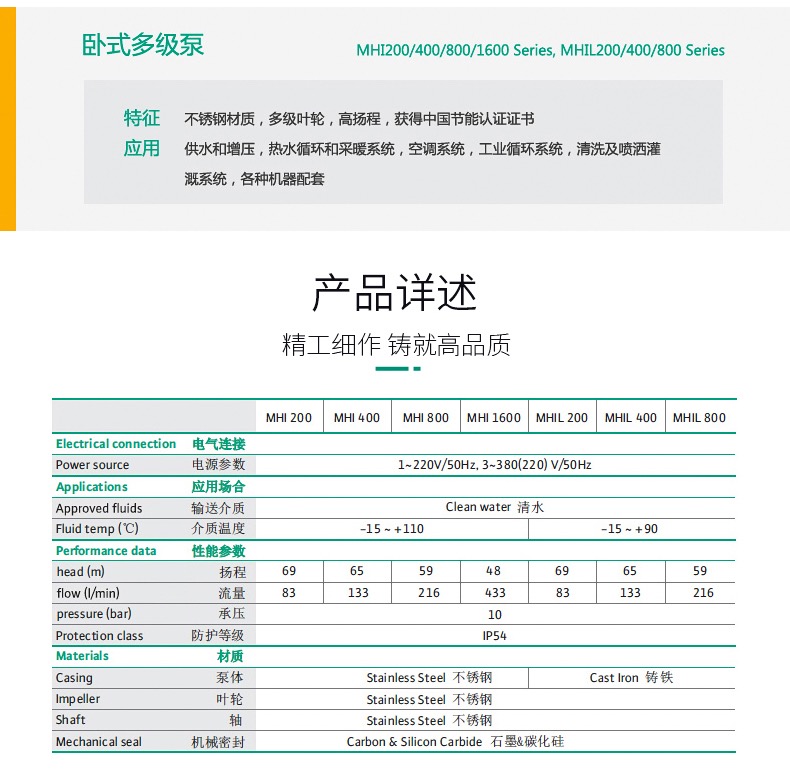 MHI1603卧式多级不锈钢泵
